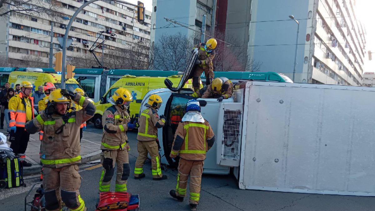 Per causes que encara s’estan investigant, un camió ha col·lidit amb un tramvia, fet que ha provocat que el vehicle pesant acabés bolcat a la calçada.