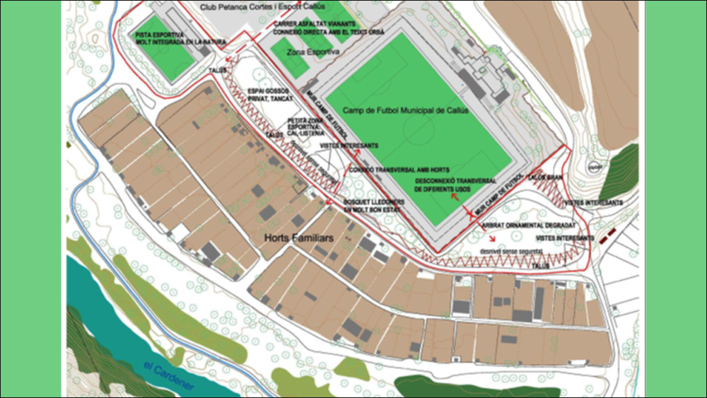 La Diputació de Barcelona ha presentat a l’Ajuntament de Callús un informe per a la creació d’un nou espai verd a la zona de la Font, situat en una parcel·la d’1,1 hectàrees actualment sense urbanitzar, adjacents al camp de futbol. Aquest estudi es centra en l’anàlisi de diverses opcions d’actuació i proporciona orientacions per a la presa de decisions, tant per a tècnics com per a representants polítics del municipi.