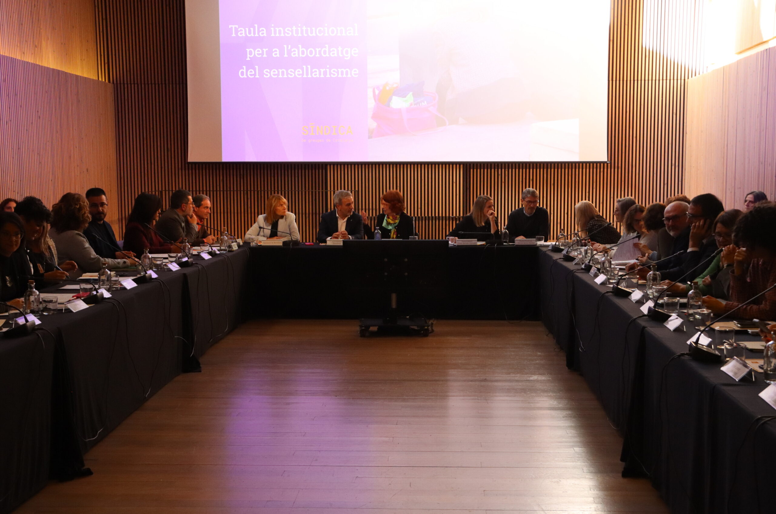 Amb aquestes dades damunt la taula, el Síndic de Greuges de Catalunya havia convocat per aquest dijous una taula institucional al Recinte Modernista de Sant Pau de Barcelona per abordar la realitat del sensellarisme i els assentaments urbans, amb la participació de membres del Govern, alcaldes i representants de la Taula d’Entitats del Tercer Sector Social. La síndica, Esther Giménez-Salinas, ha encapçalat la reunió, entre la consellera Mònica Martínez Bravo i l’alcalde de Barcelona, Jaume Collboni.