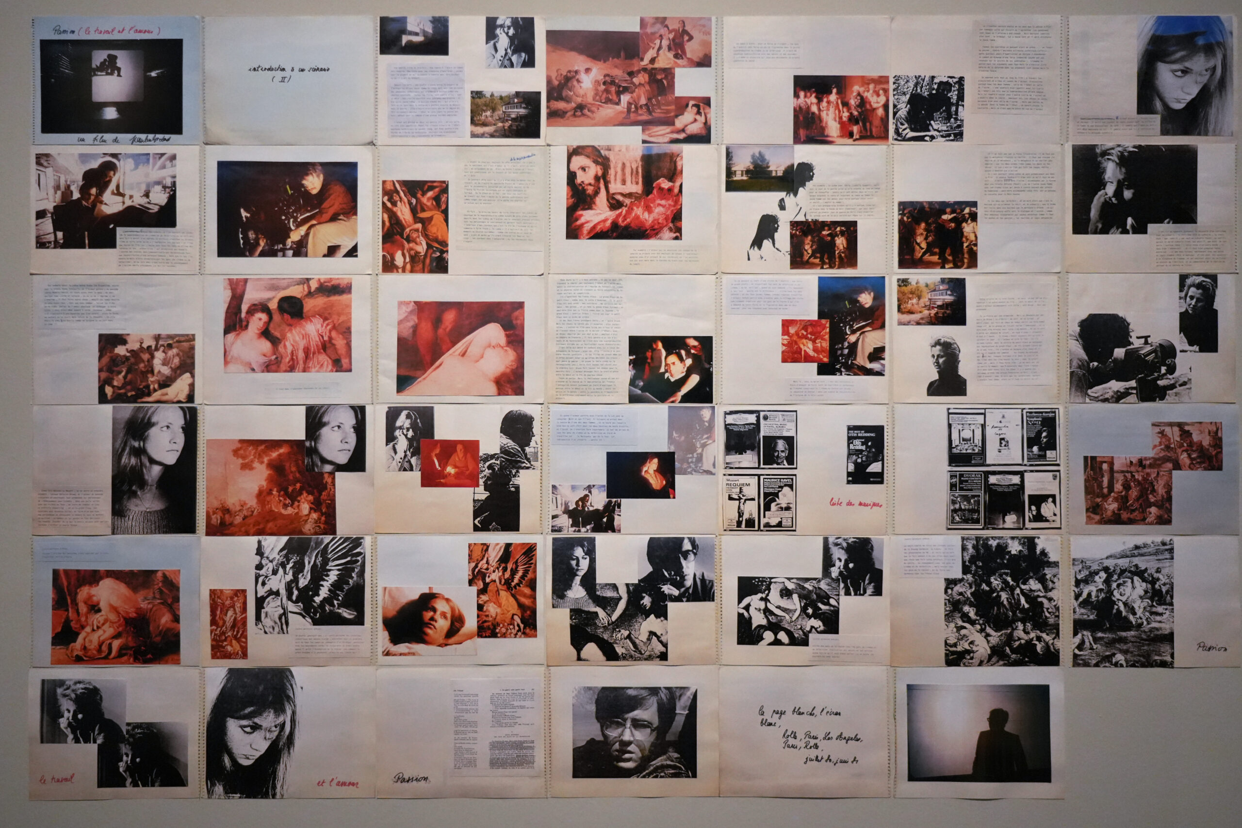 La majoria dels materials de l’exposició, que ha comptat amb la col·laboració de la Fundació Godard, són inèdits. Destaquen els 52 documents audiovisuals, nombrosos quaderns de rodatge del cineasta traspassat el 2022, a més d’arxius preparatoris per a publicacions com ‘Histoire(s) du Cinema’.