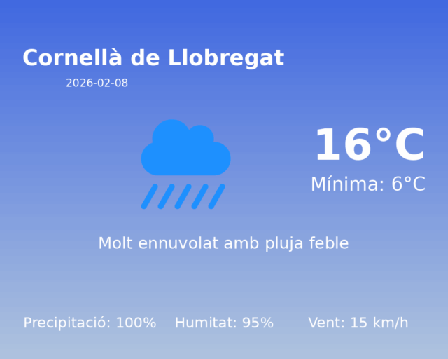 Predicció del Temps a Cornellà de Llobregat per al 8 de febrer de 2026
