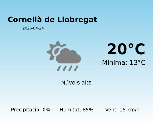 Predicció del Temps per Cornellà de Llobregat – 24 d’Abril de 2026